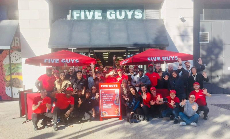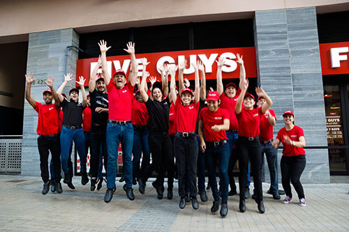 • Several Five Guys employees pose
