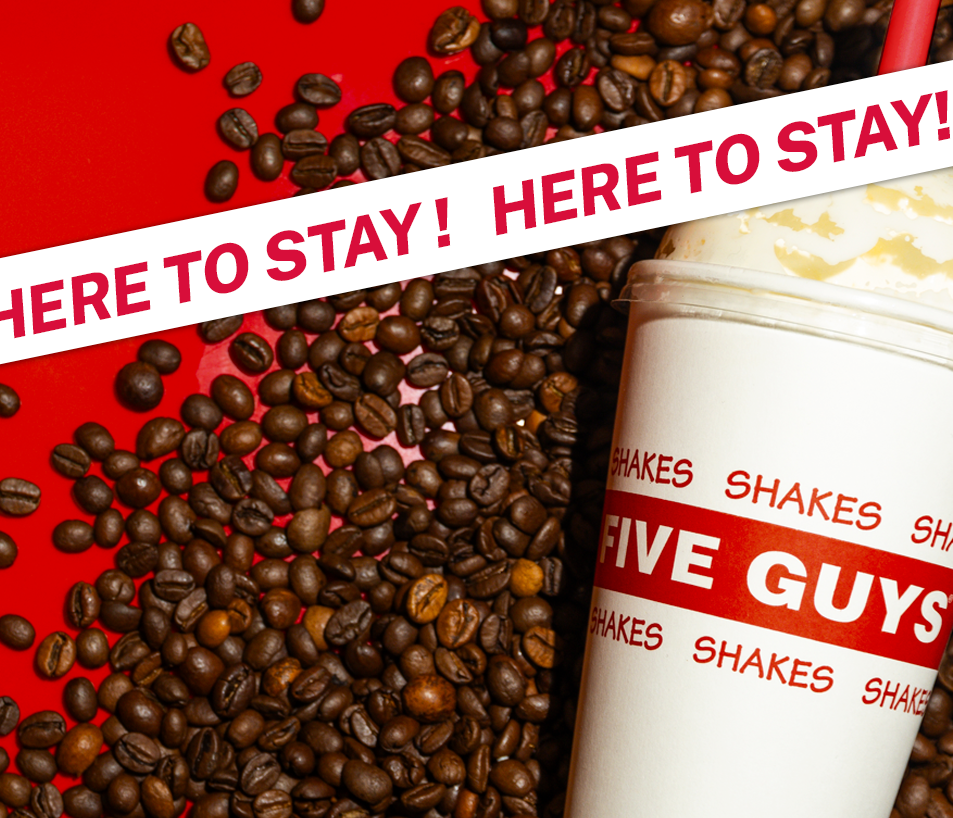 Starting September 15, our popular coffee milkshake mix-in becomes a permanent menu item at all Five Guys locations.